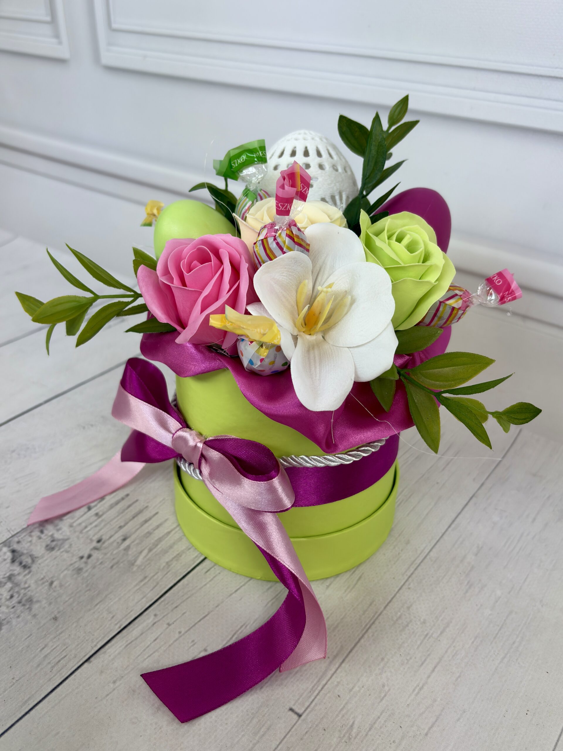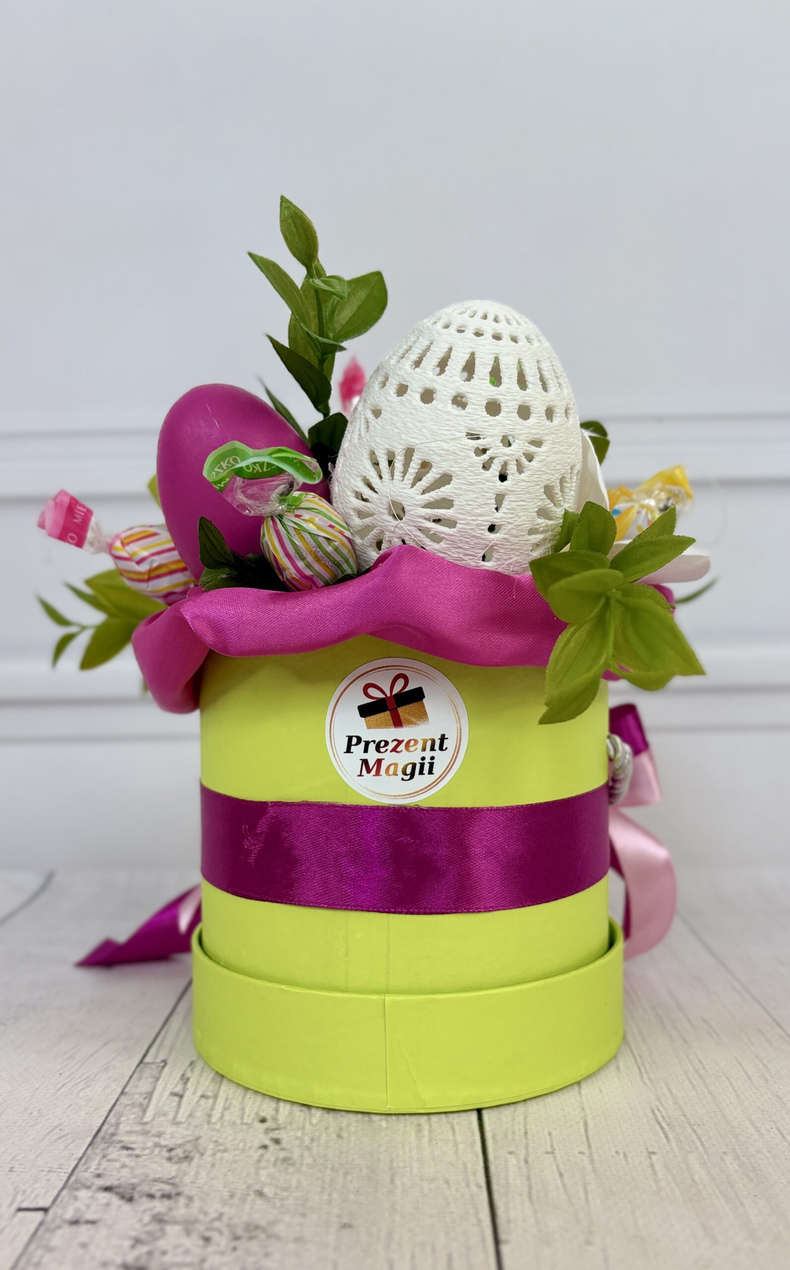 Uroczy, ręcznie wykonany boks wielkanocny w świeżych odcieniach zieleni, różu i kremu ✨