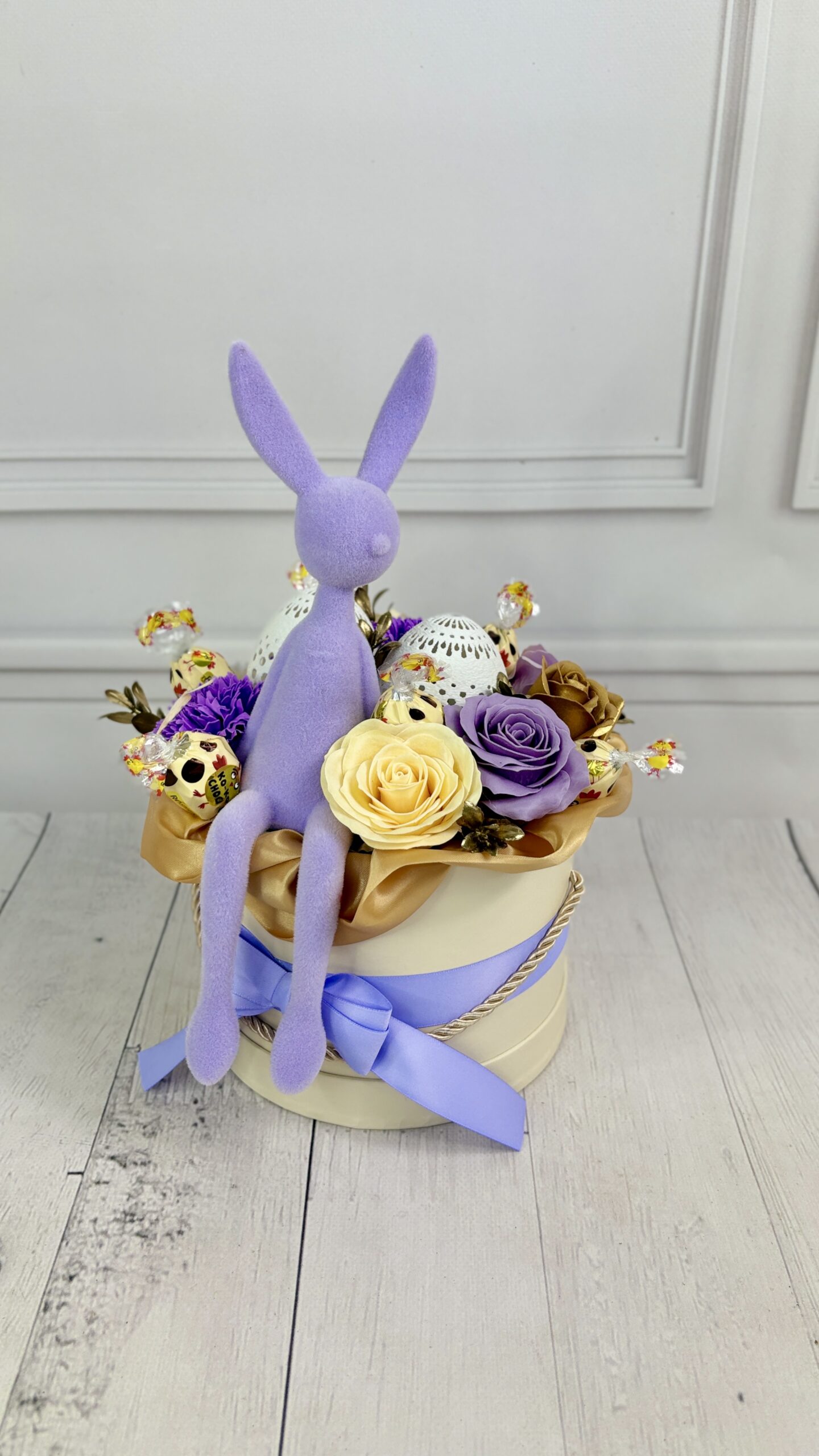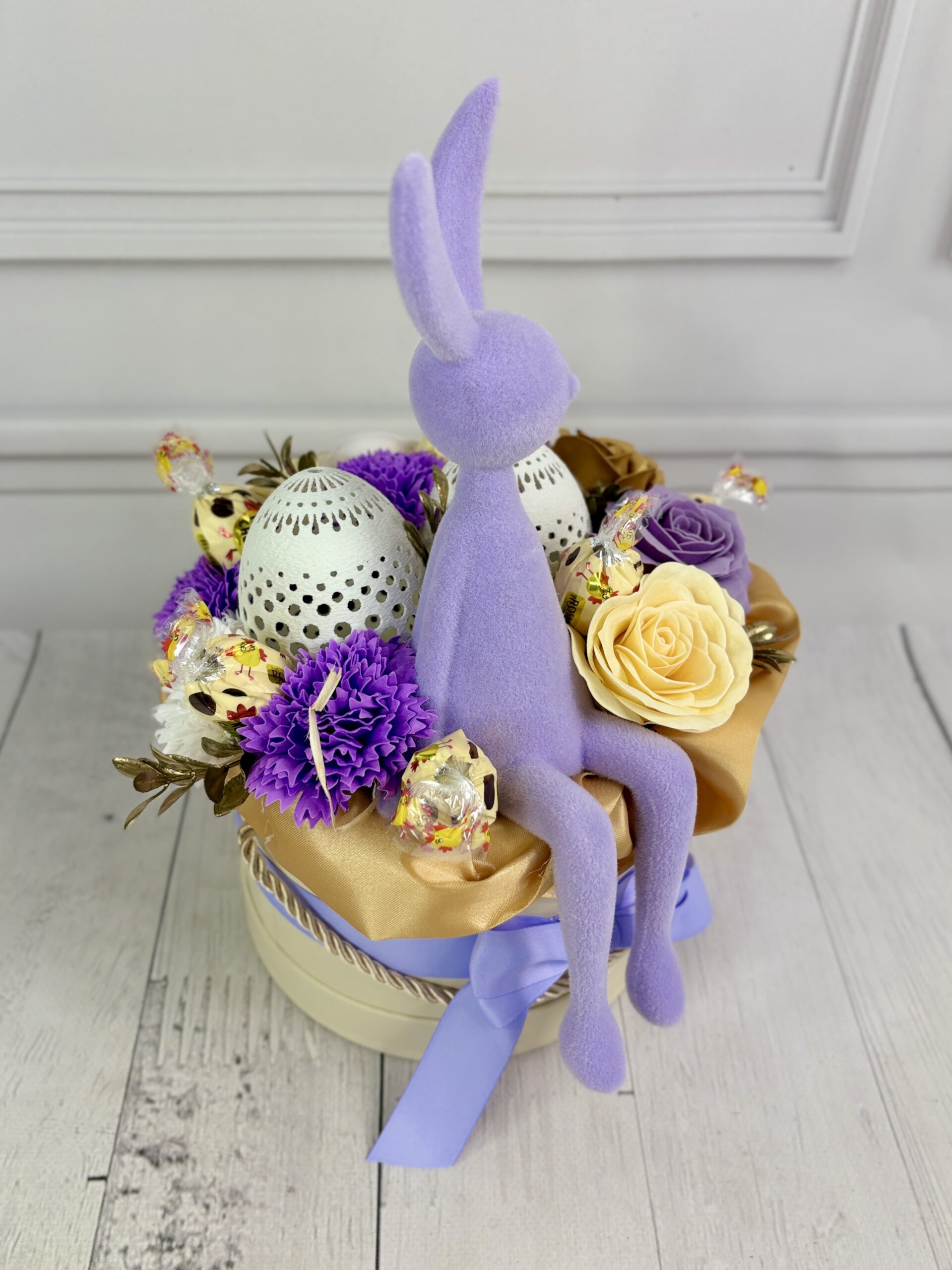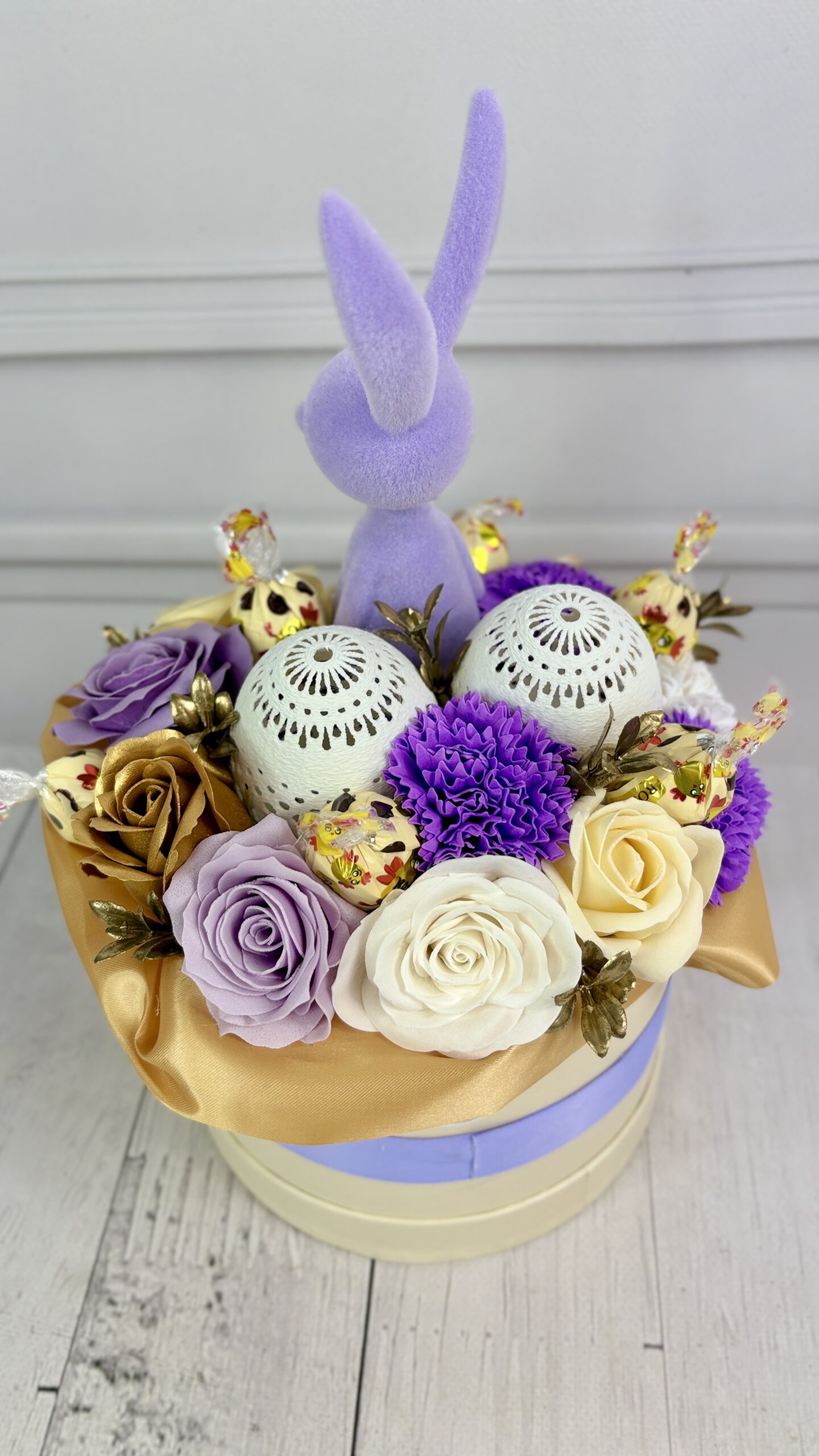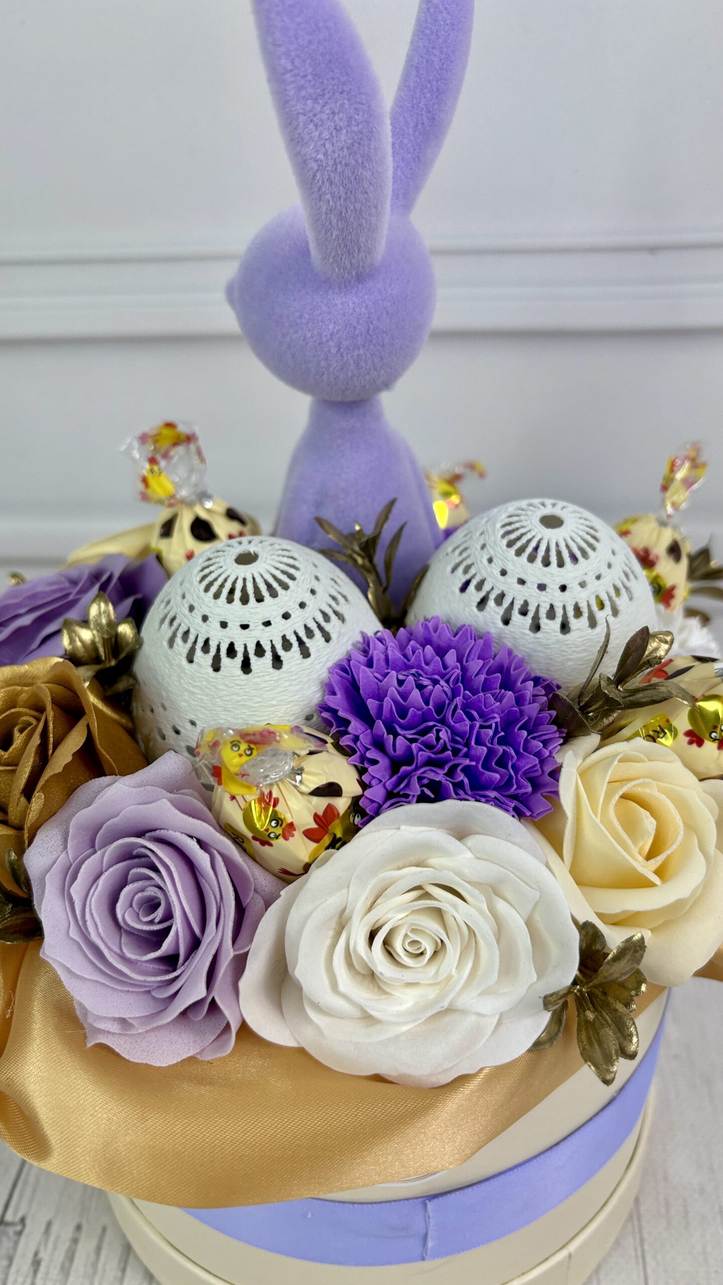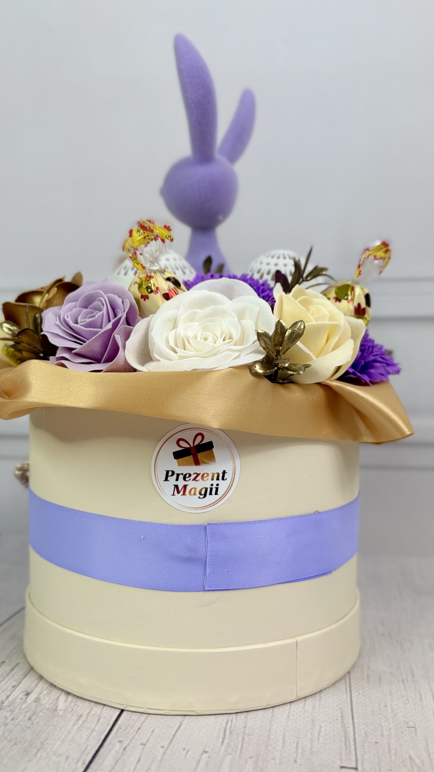 Elegancki, ręcznie wykonany boks wielkanocny w subtelnych odcieniach lawendy, kremu i złota ✨
